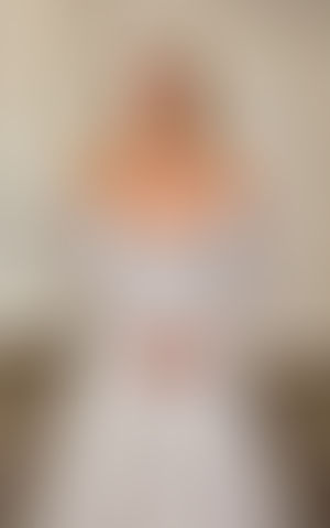 Ballgown with ivory all over lace, champagne tulle and matte lining, skin unlined bodice, long sleeves, buttons to end of train.