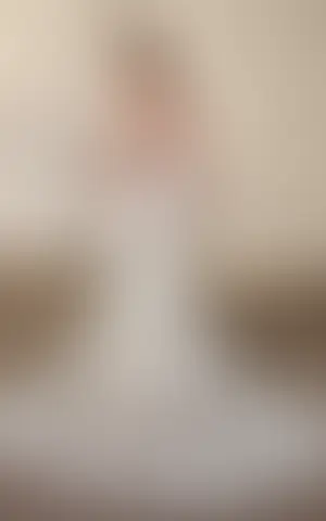 Fit-n-Flare gown with ivory lace and sequins over champagne tulle, sand stretchy lining, champagne-skin illusion neck and back, skin illusion long sleeves, buttons to end of train.