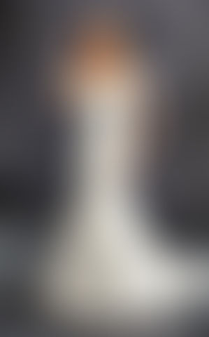 Mermaid gown with corset bodice in ivory mikado, buttons to end of train.