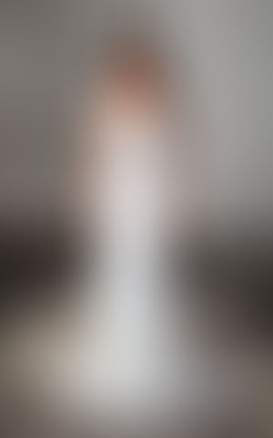 Mermaid gown with crepe front, lace with sequins and scattered beading over skin tulle over back detail-illusion train, nude stretchy lining, buttons over zipper.