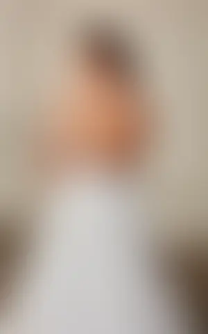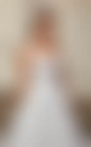 Ballgown in ivory lace over satin-organza, unlined organza and champagne tulle bodice, ivory matte lining, champagne/skin unlined back, buttons to end of train.