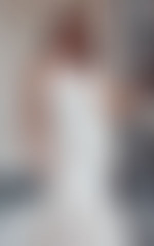 Mermaid gown with beaded ivory lace and sequins over champagne tulle, nude stretchy lining, illusion high neck and back, buttons to end of train.