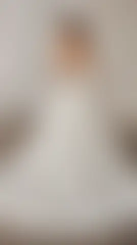 Ballgown in ivory organza, beaded ivory lace with sequins, ivory unlined bodice, ivory/skin unlined back, attached swag sleeves, pockets, buttons to end of train.