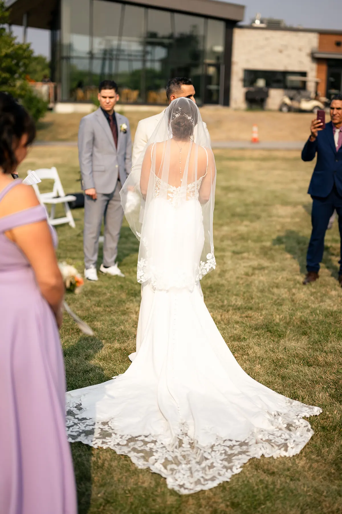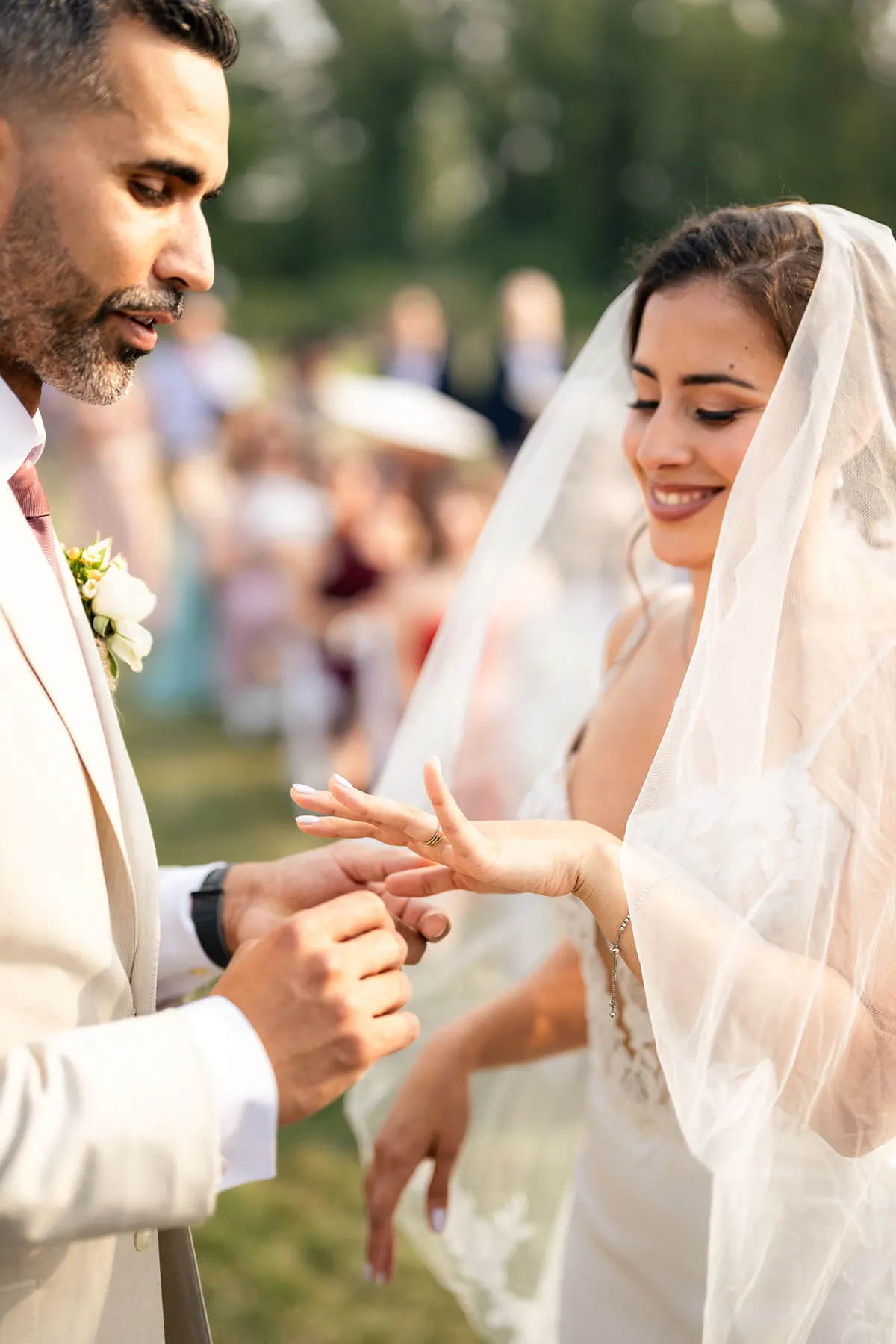 Nel momento in cui ho indossato il mio abito Eddy K, ho sentito che era fatto apposta per me: una vestibilità perfetta. Ogni dettaglio sembrava così naturale, come se fosse sempre stato parte della mia storia. Il tessuto scorreva senza sforzo, leggero ma elegante, abbracciandomi a ogni passo. E quando ho aggiunto il velo, tutto si è unito: delicato, morbido e quasi magico. Non mi sono sentita mascherata o troppo elegante: mi sentivo la versione più autentica di me stessa, radiosa e completamente immersa nel momento. - Silvana