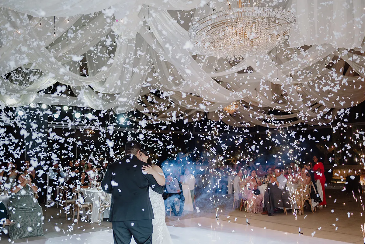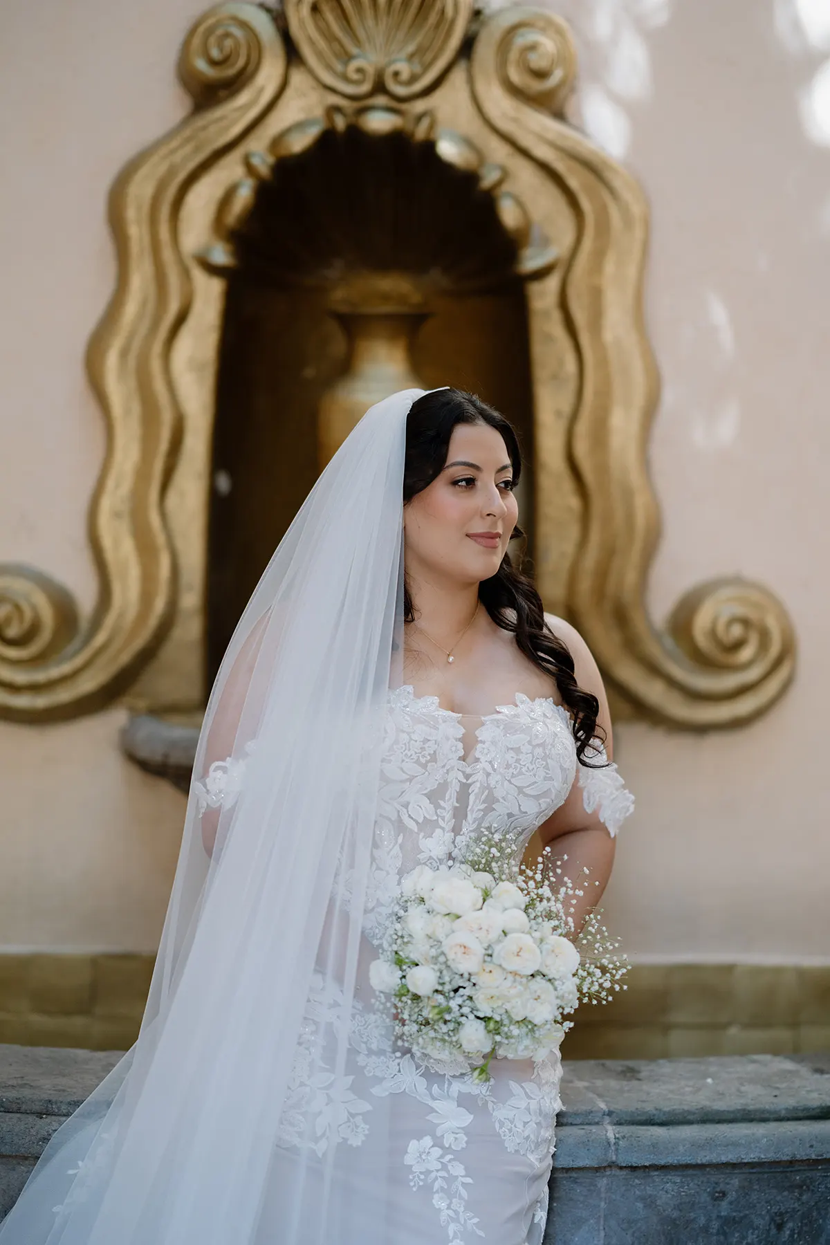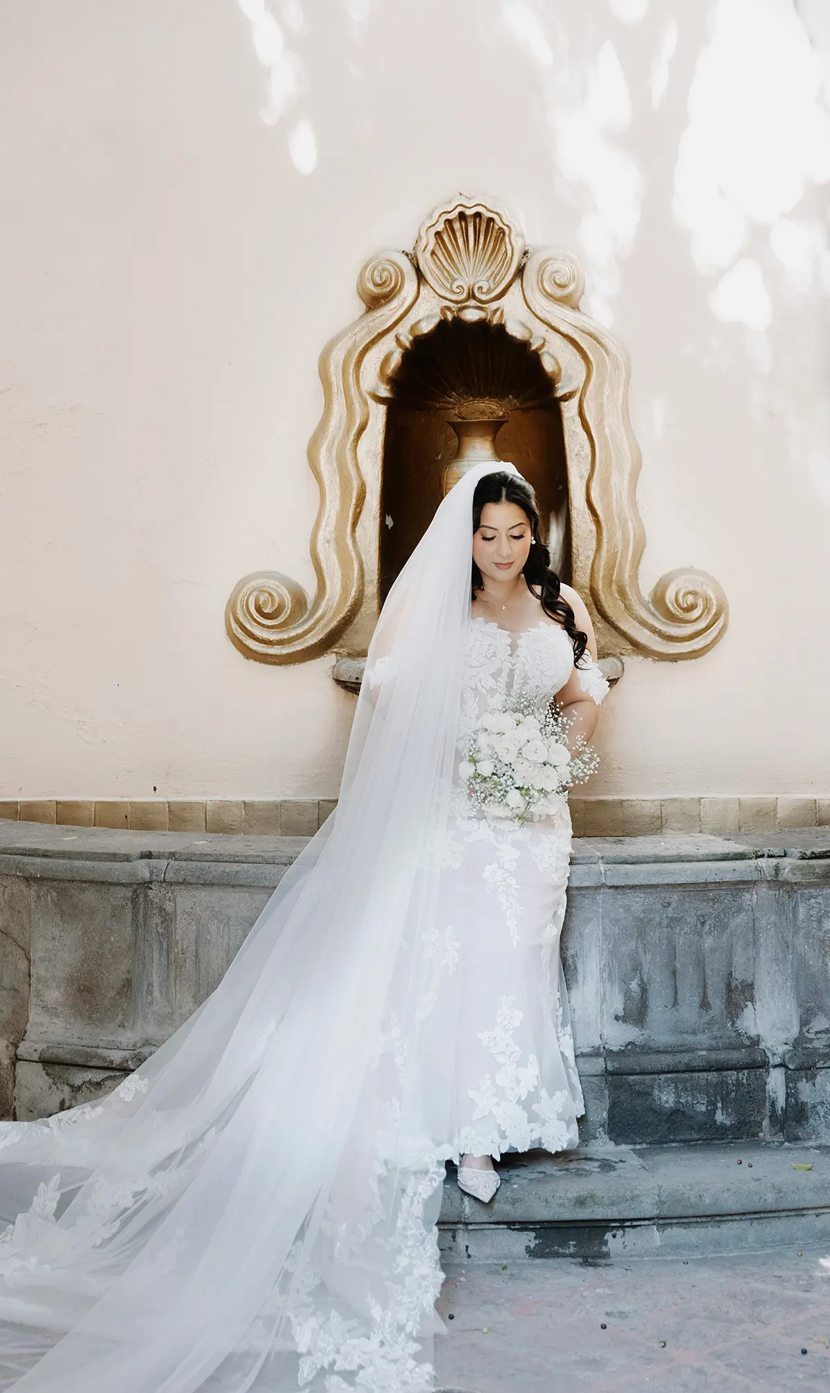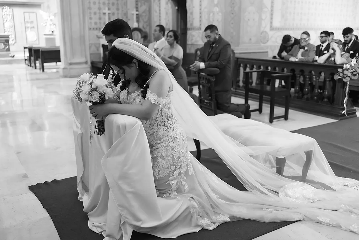 Andrea celebrated with an Ethereal Garden Elegance wedding in the heart of Mexico — a ceremony at the historic Templo de Santo Domingo followed by a reception at the breathtaking Hacienda Solariega in Santiago de Querétaro. She wore the ALANIS gown from Eddy K's Dreams collection: elegant, romantic, and entirely her. From the moment she tried it on at Marie Gabriel Bridal, she knew. "It was elegant, comfortable, and truly felt like me," she said — and in every photograph from Querétaro, it shows.