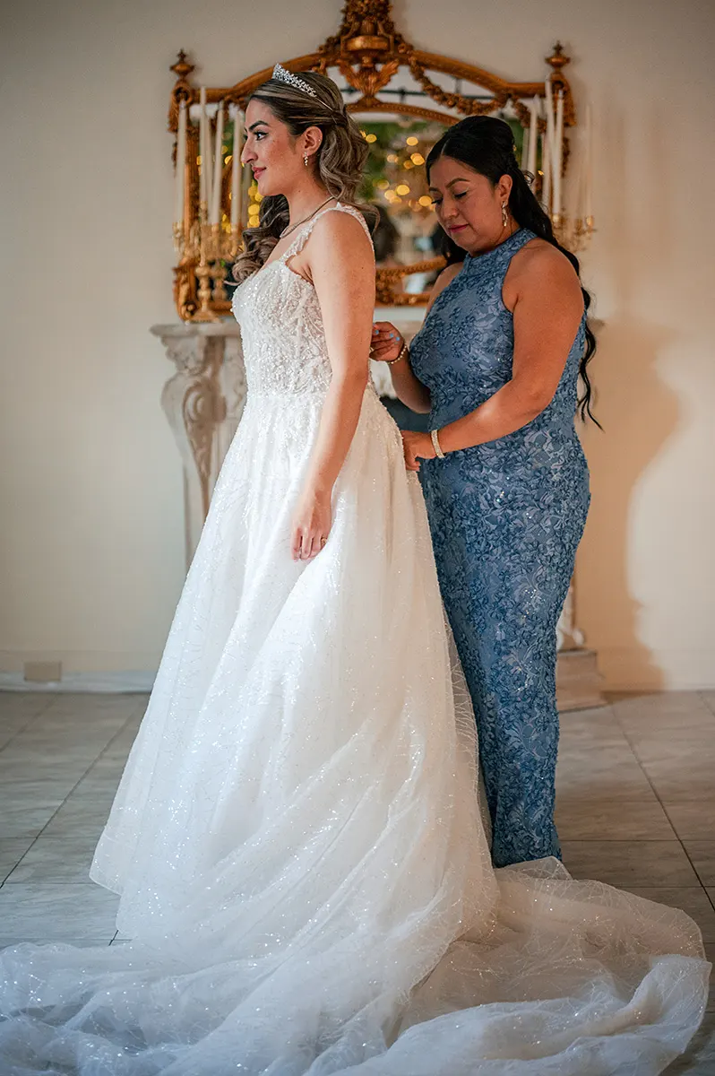It was the most dreamy experience ever. I remember how much I wanted a gown that would make me feel like a princess on my wedding day. I am a huge fan of Disney princess movies and this dress reminded me of all the princess from my childhood. This dress has so much detail and it very unique made. - Nallely