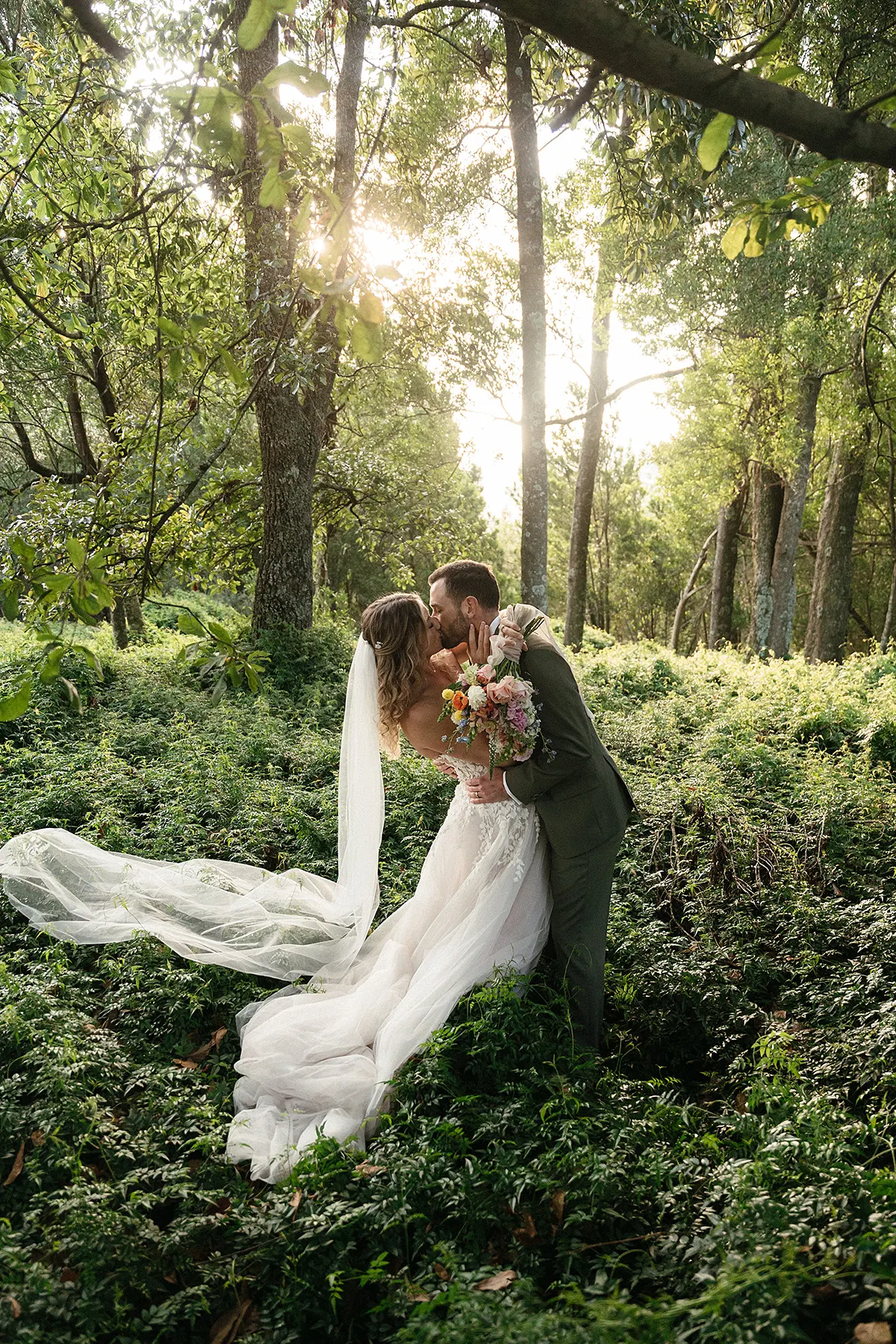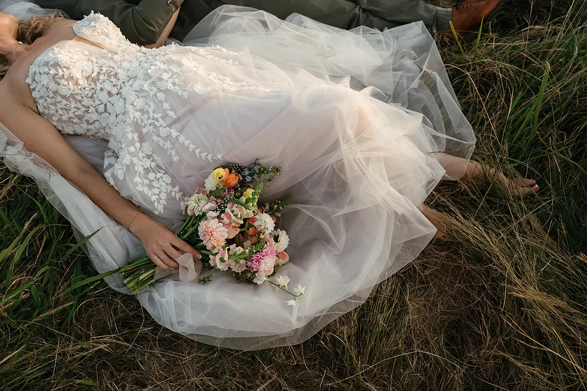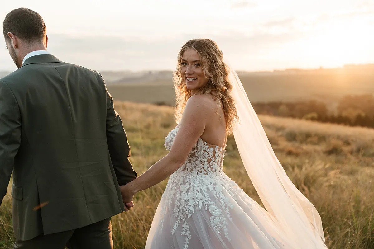 I was on a camping trip with one of my bridesmaids for her daughters first birthday (which was exactly a year from our wedding date) in Leicestershire, England when we decided for a bit of fun, let's find a local wedding shop and try on dresses. Alice Rose Bridal in Ashby-de-la-Zouch thankfully had availability! I told them I was getting married in a forest chapel in South Africa, to think 'Forest Fairy' and I needed to be able to dance to Cotton Eyed Joe in my dress. I tried on a few dresses first but when I tried on the Eddy K dress called Calinda, I knew instantly she was the one! She was so light and freeing, I felt so beautiful, The 3D flowers, the touch of sparkle, the unique colour undertones and the detailing at the back of the dress - She was PERFECT. And of course, the ultimate test; can I dance to Cotton Eyed Joe....and away I went, dancing around the fitting room to my favourite childhood song I had with my Dad. Everyone joining in, laughing and smiling! It truly was the most magical experience! From that day on, I couldn't stop thinking about Calinda. Every dress I tried on afterwards, I'd compare to her. So I knew I had to make one last trip to Alice Rose Bridal to bring her home to where she belonged. - Nikki