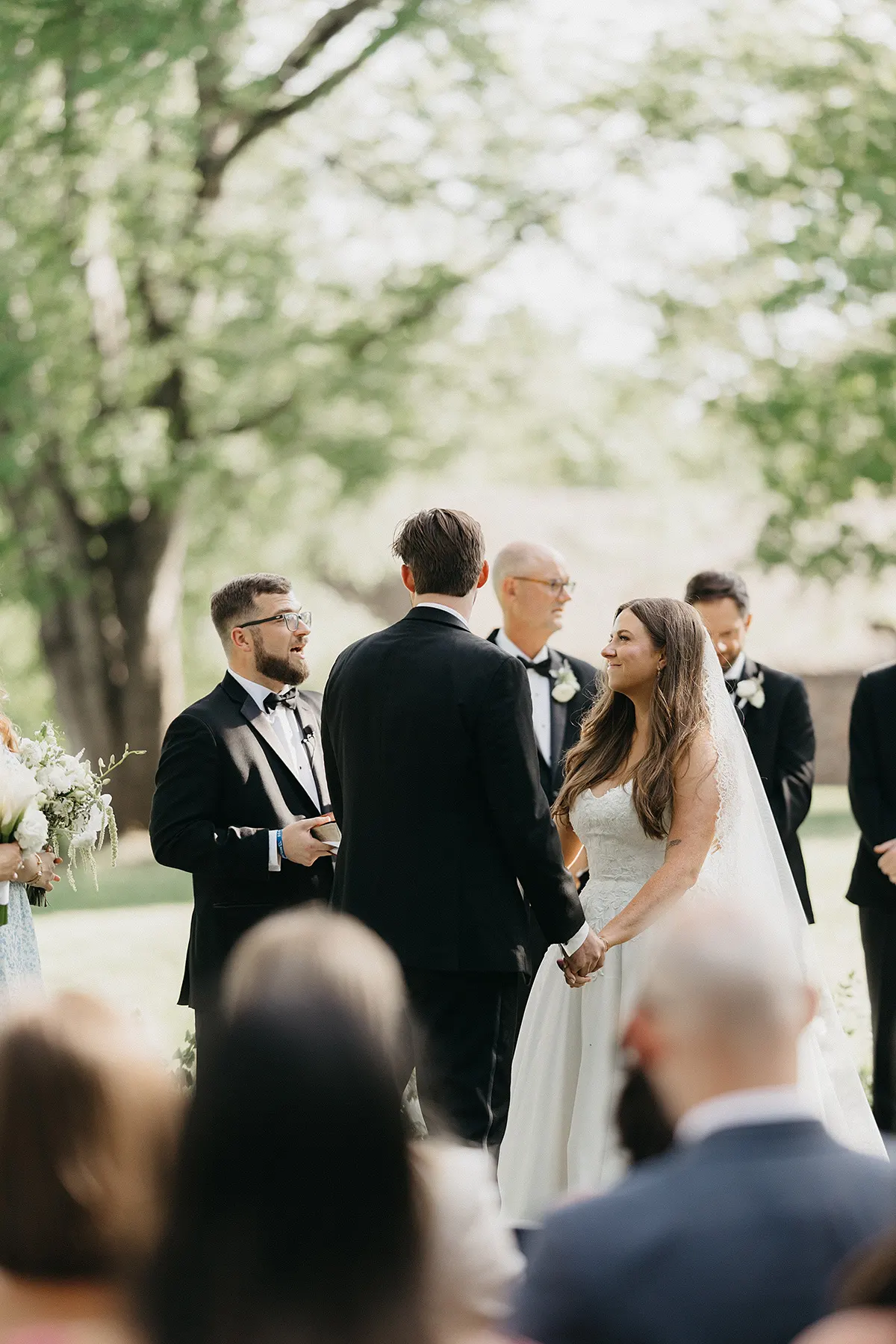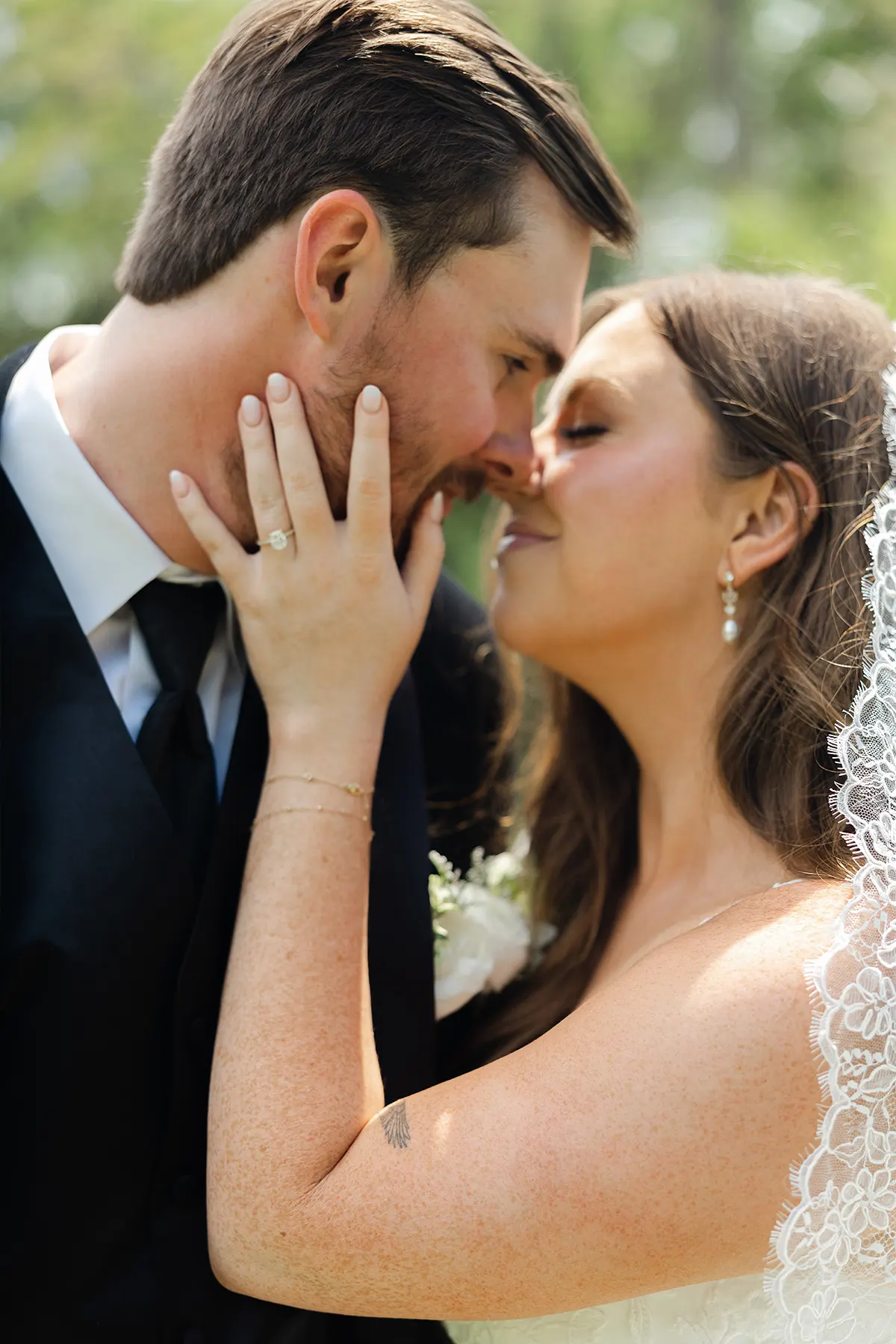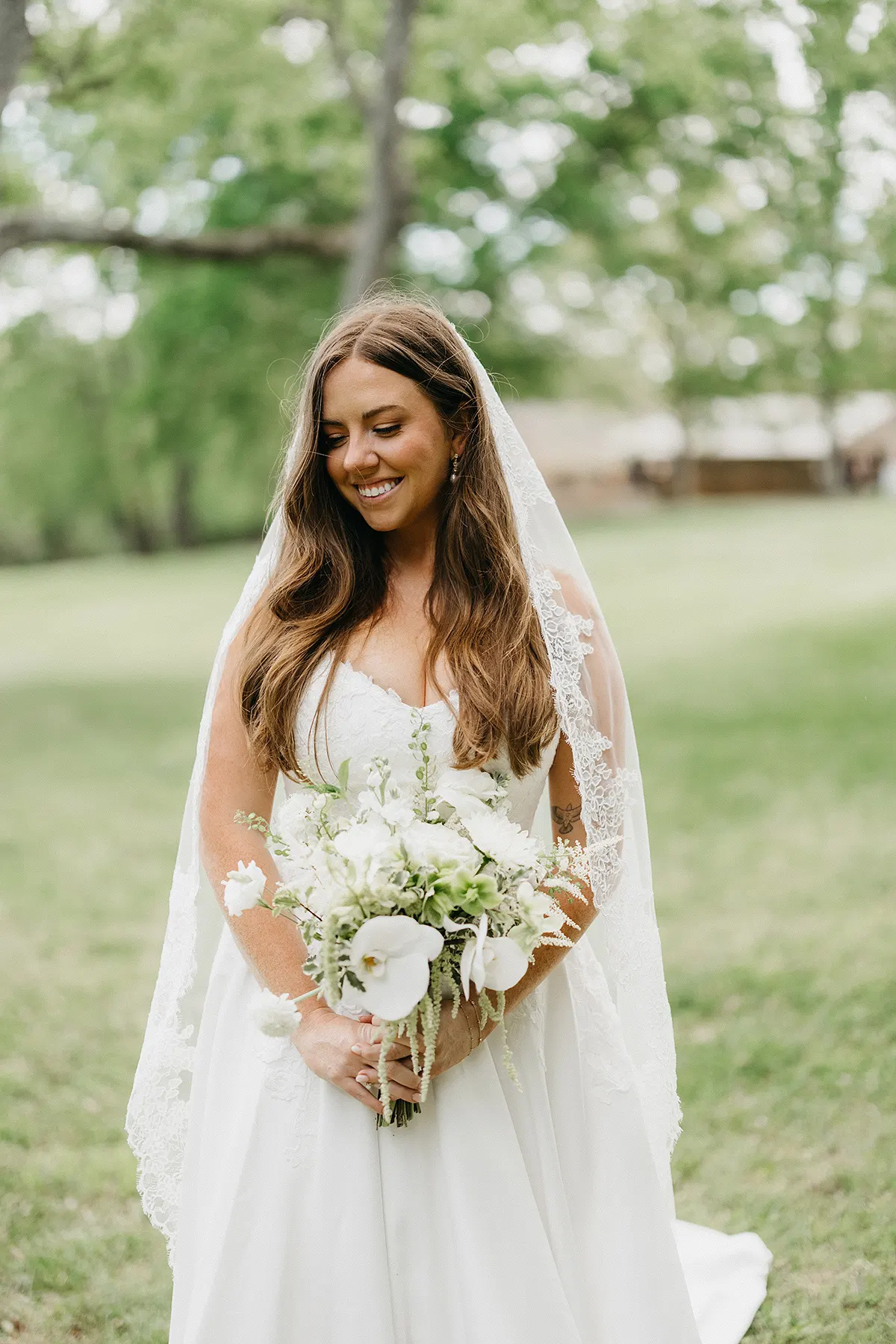I tried on over 65 gowns searching for the one I had pictured in my head—but nothing quite matched the vision. I knew I wanted something timeless and elegant, with a solid ivory base, delicate lace appliqués, and a shape that felt bridal but still me.